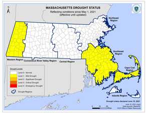 "This summer, the Commonwealth's drought monitor regions continue to experience fluctuations in conditions, which necessitates us all to take proactive water conservation steps to reduce the burden on our natural systems and public water supplies," said Energy and Environmental Affairs Secretary Kathleen Theoharides. "With the growing season and high water usage recreation months officially starting, we strongly recommend that both residents and businesses limit outdoor water use to safeguard vital water systems."